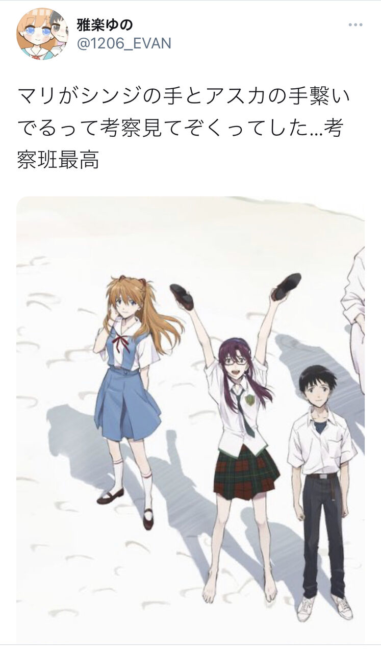 17 風吹けば名無し :2022/01/15(土) 09:21:20.82 レイはお母さんだしアスカは同居してて兄弟みいたいなもんだからまったくの他人のマリが一番なんだわ