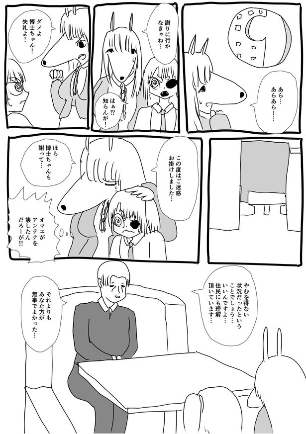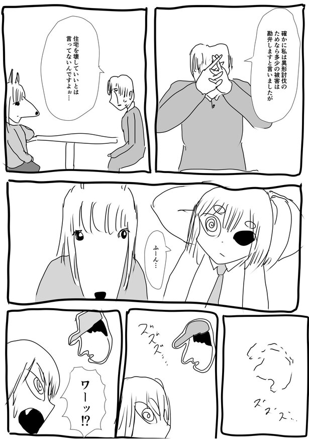 「1話は完全にお試しで描いたので、何も考えていませんでしたし、その話を続けていく自信もありませんでした。第1話の反響から間を置いて、初めて自分の漫画に対して1万いいねが付いた記念に恋人と行った居酒屋で、第2話以降を描く決断をしました。長編として連載する決意をした段階で、第2話以降の構想およびケモ夫人とはどういう人物なのかを固めていきました」