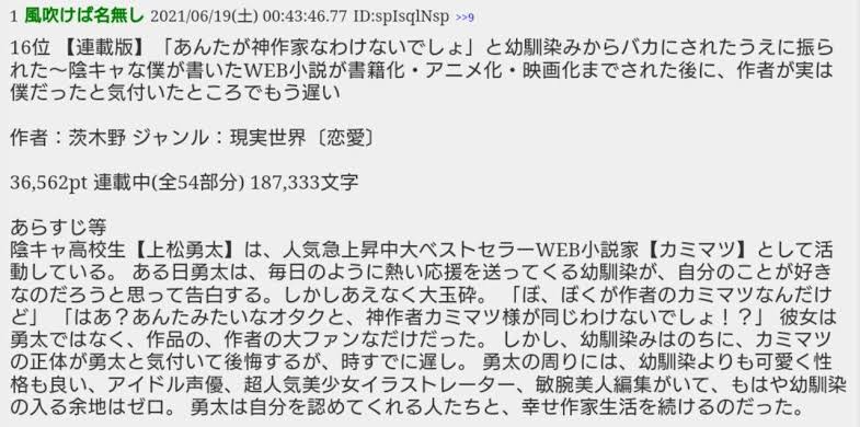 これがランキング上位作品のあらすじだよ😁